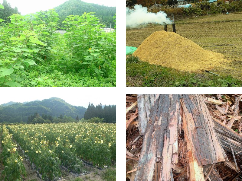 秋田産のおコメのもみ殻(くん炭)と自家栽培のコウゾ、秋田杉の樹皮の繊維を使用。自然素材100%