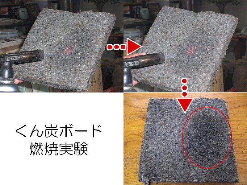 炭は炭化されているので燃えににくく「難燃素材」です。